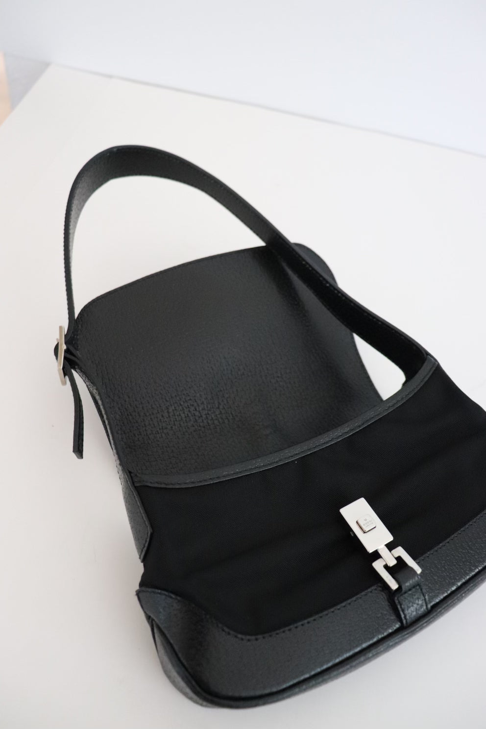 Vintage Gucci GG mini jackie black nylon with leather trim and silver piston lock | Shop Canela Vintage – The Vintage Landing