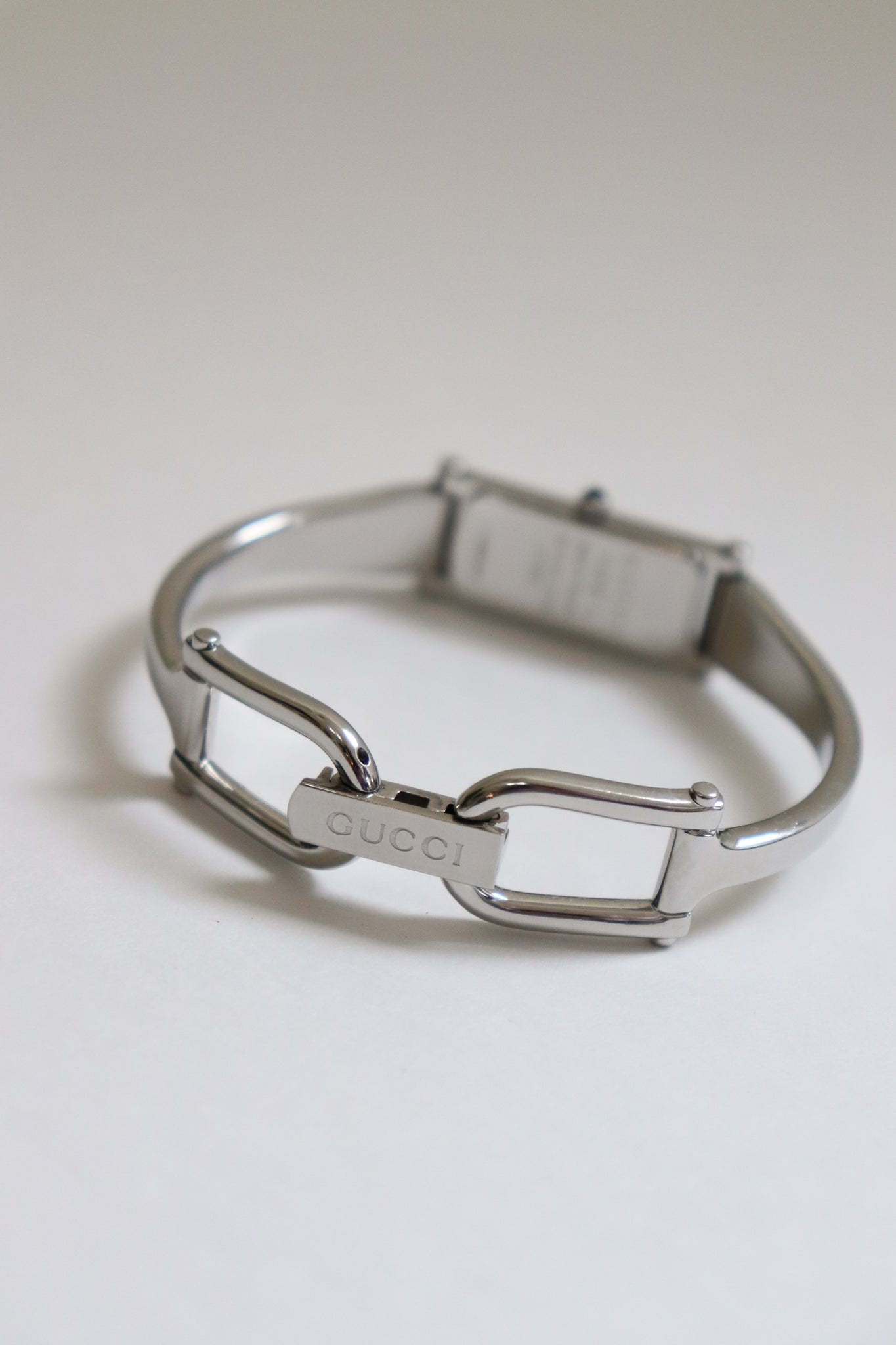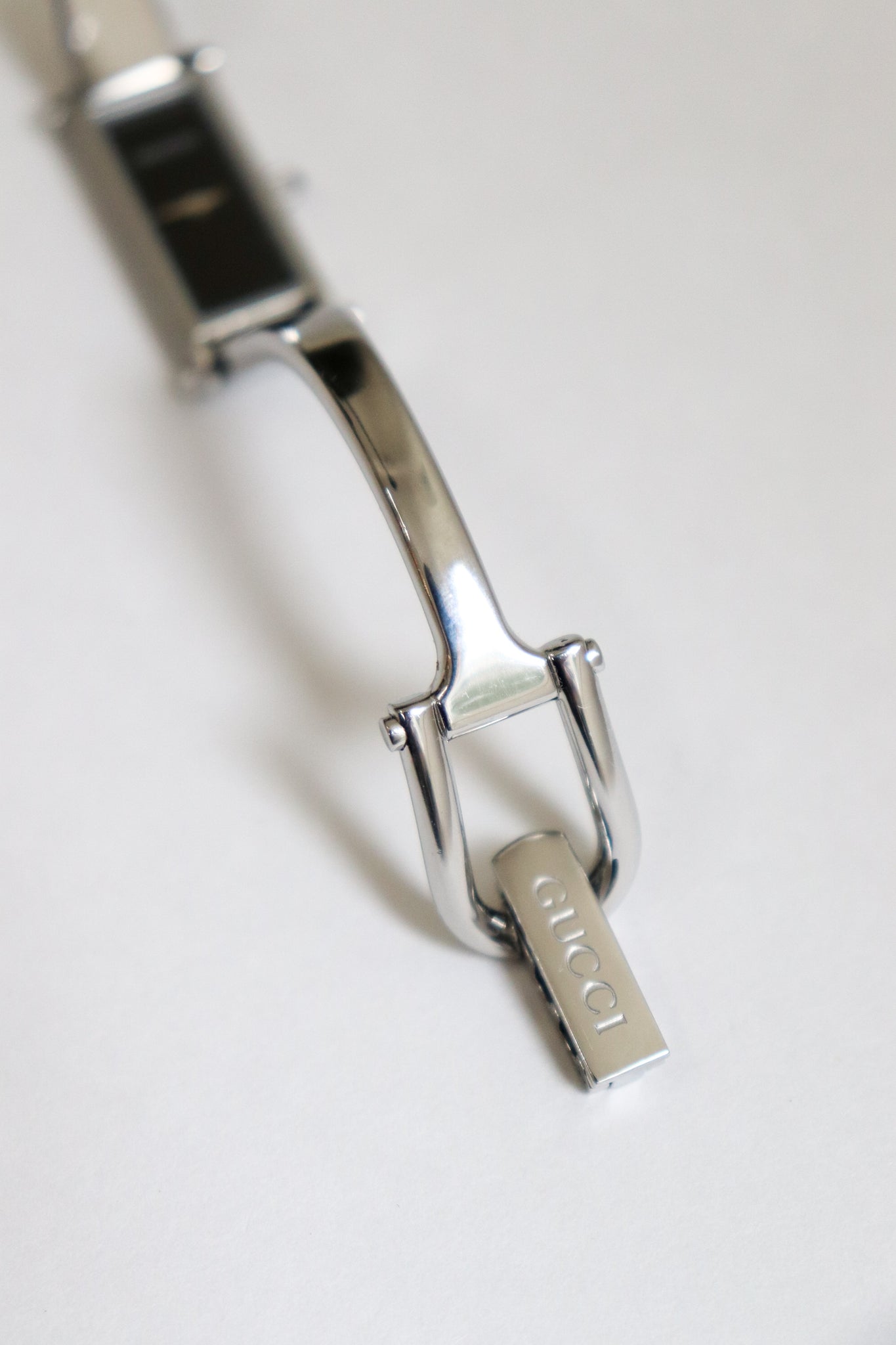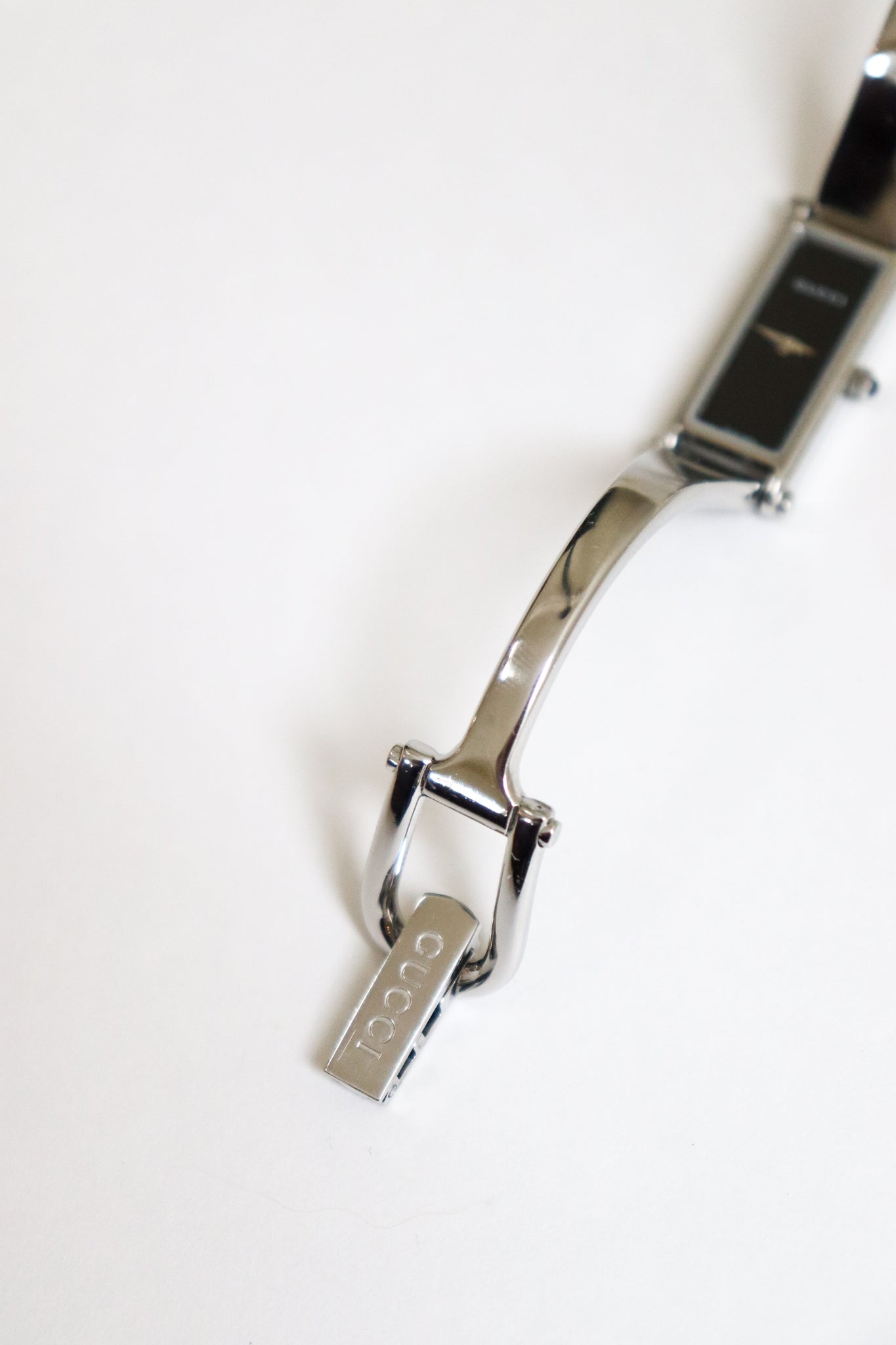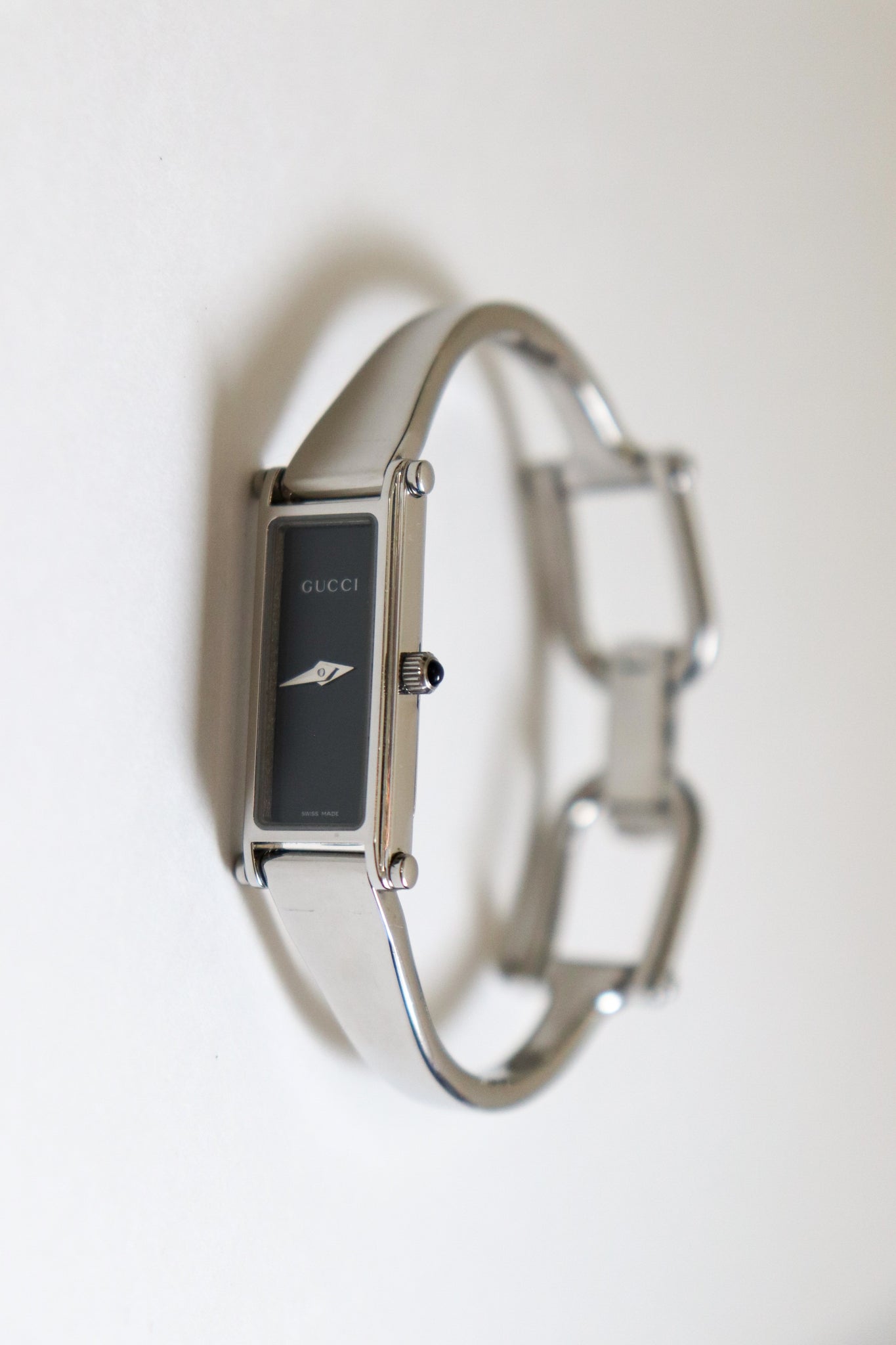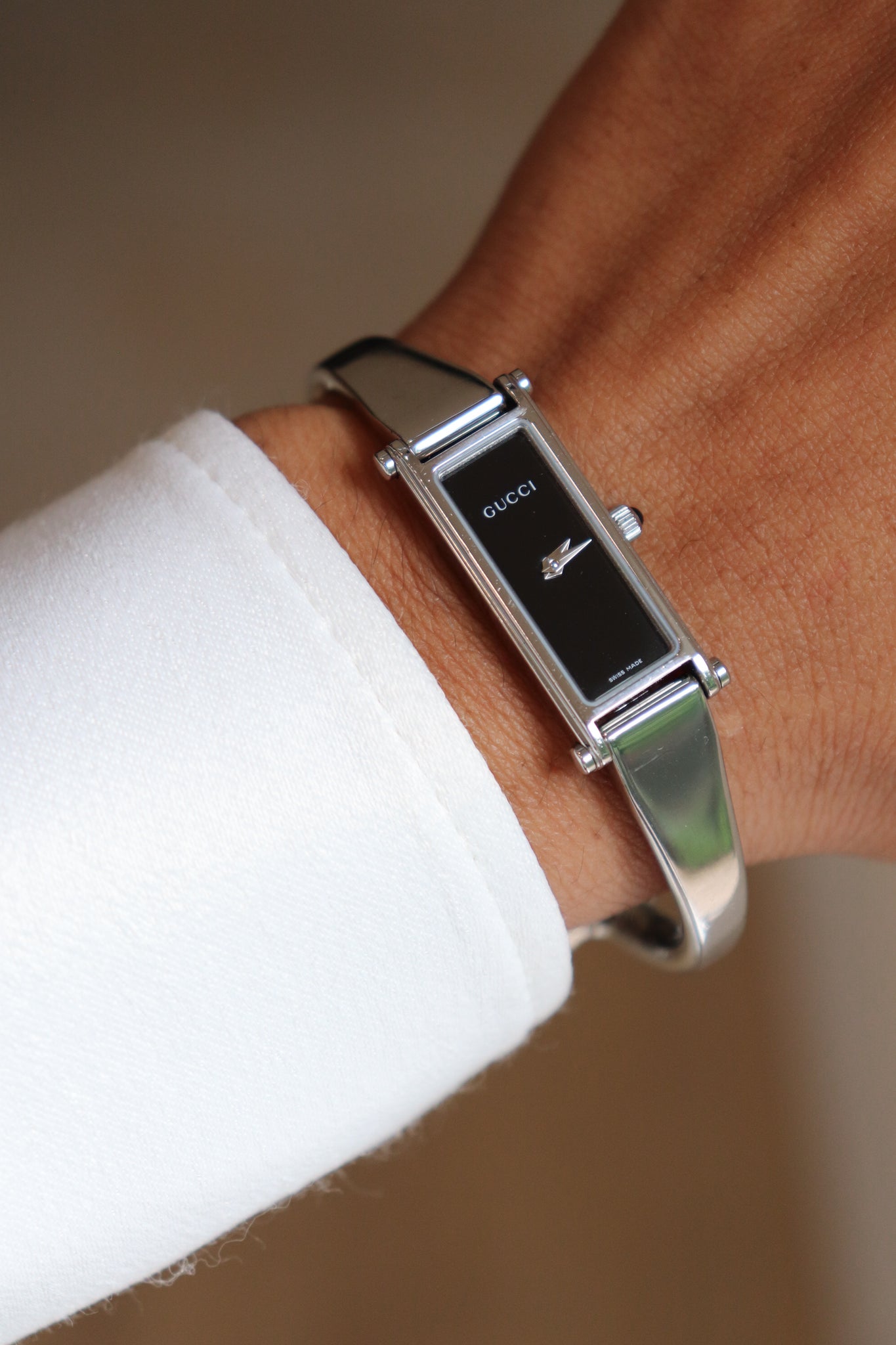 Vintage Gucci Bangle Watch in silver with black dial | Shop Canela Vintage – The Vintage Landing