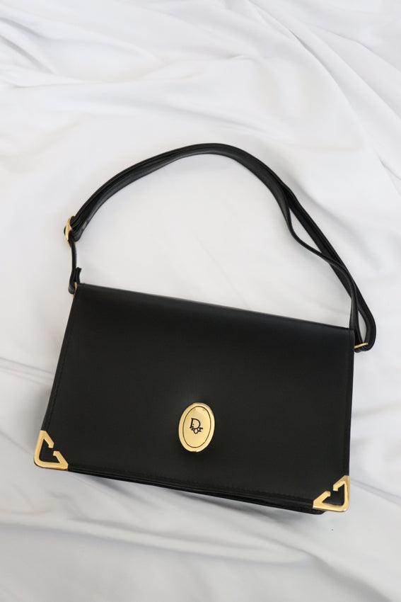 Vintage Christian Dior Black Leather Bag with Gold Chain Bag