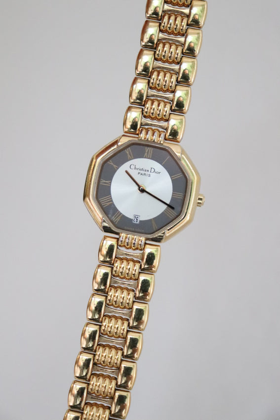 Christian Dior Silver Two Tone Modele Depose Octagonal Quartz Watch