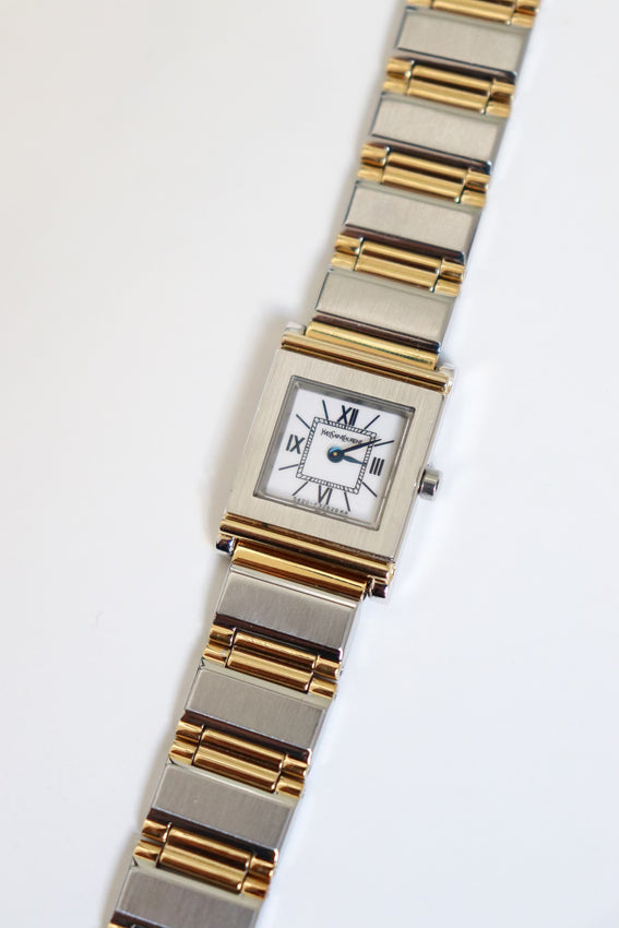 Vintage Yves Saint Laurent 1990s Square Dial Two Tone Watch