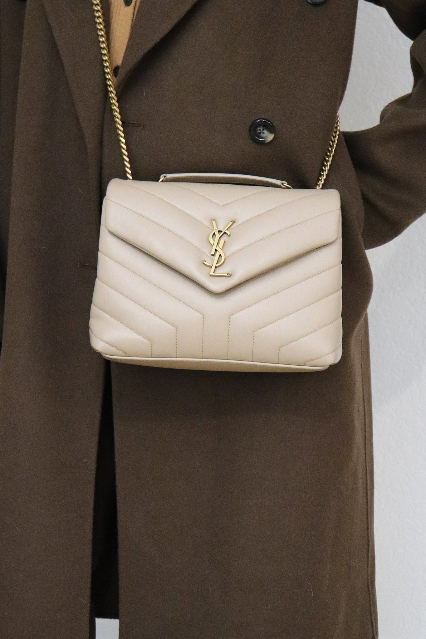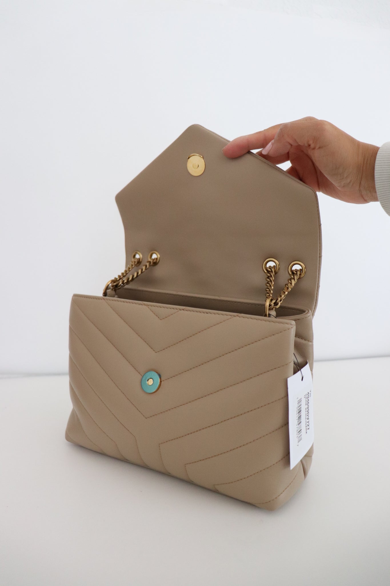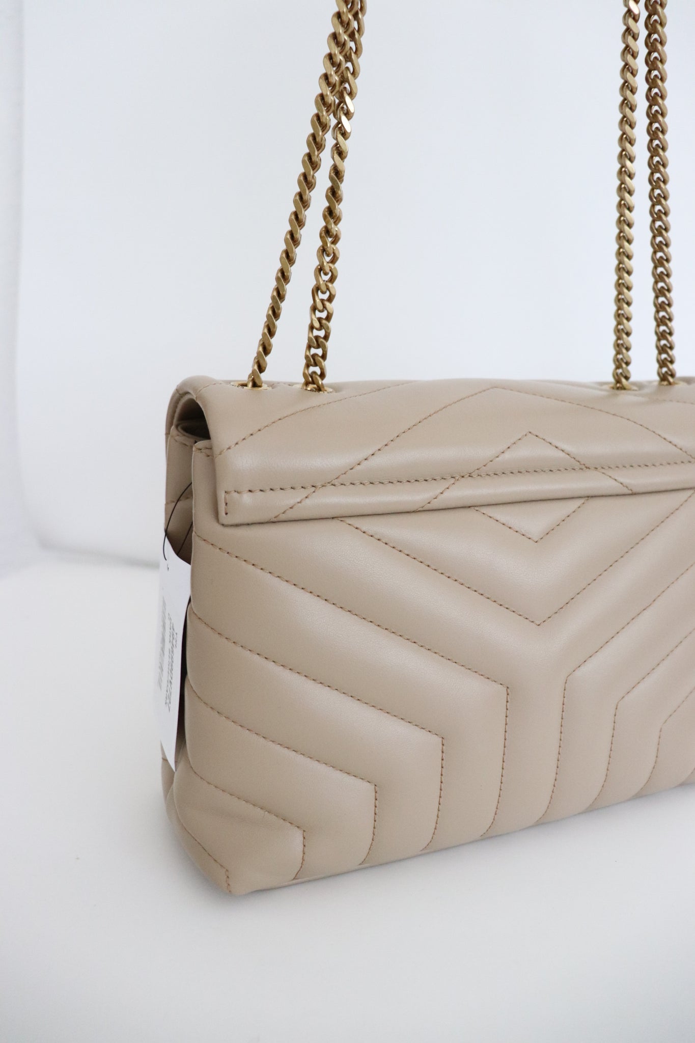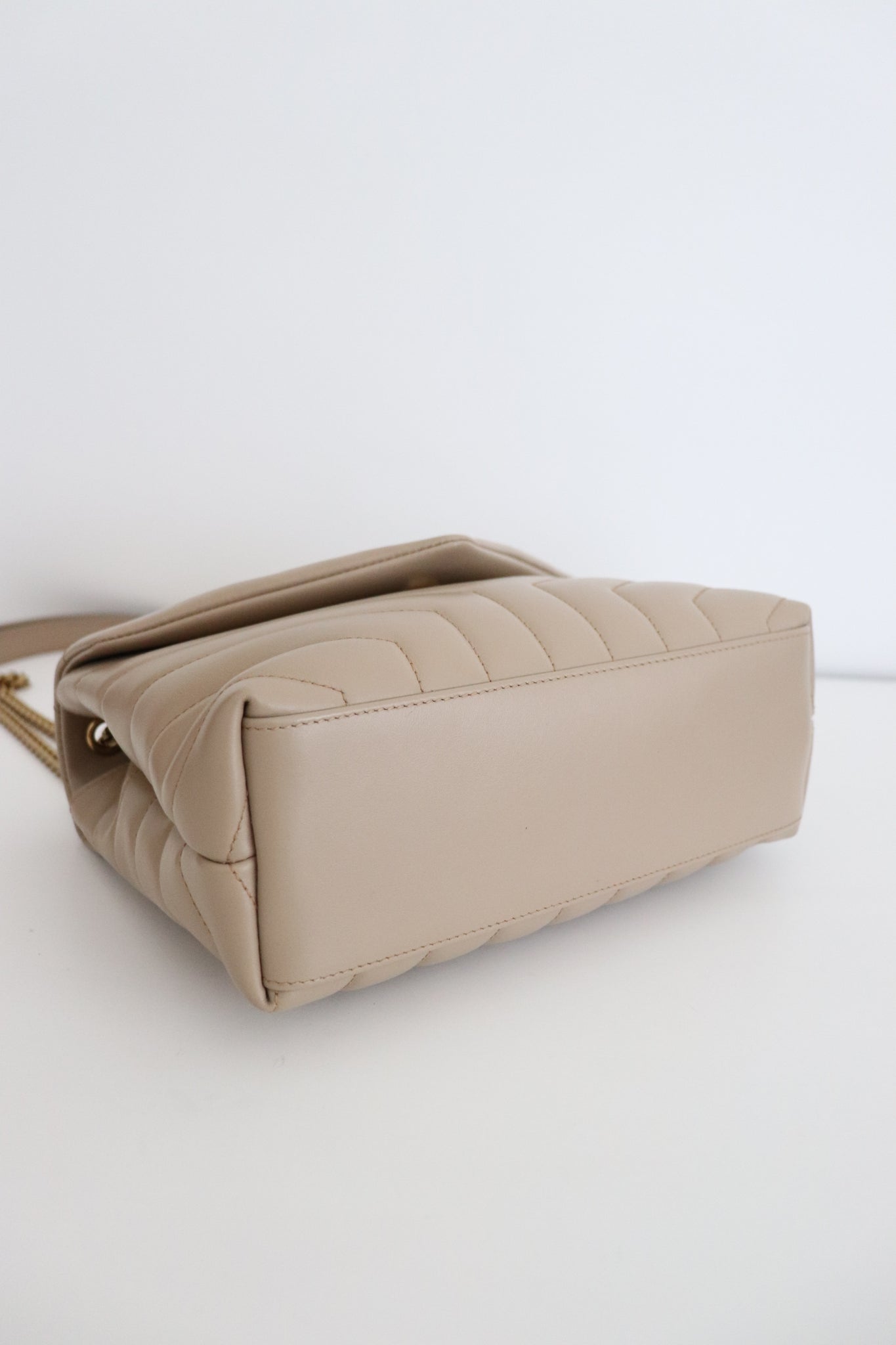 ENVELOPE BAG WITH ICONIC CHEVRON QUILT OVERSTITCHING.