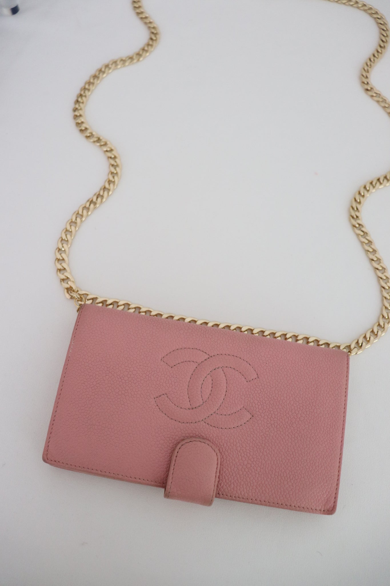 Please note: Styled with a generic chain. Some rubbing on the corners as shown in photos. Interiors have some marks of discoloration