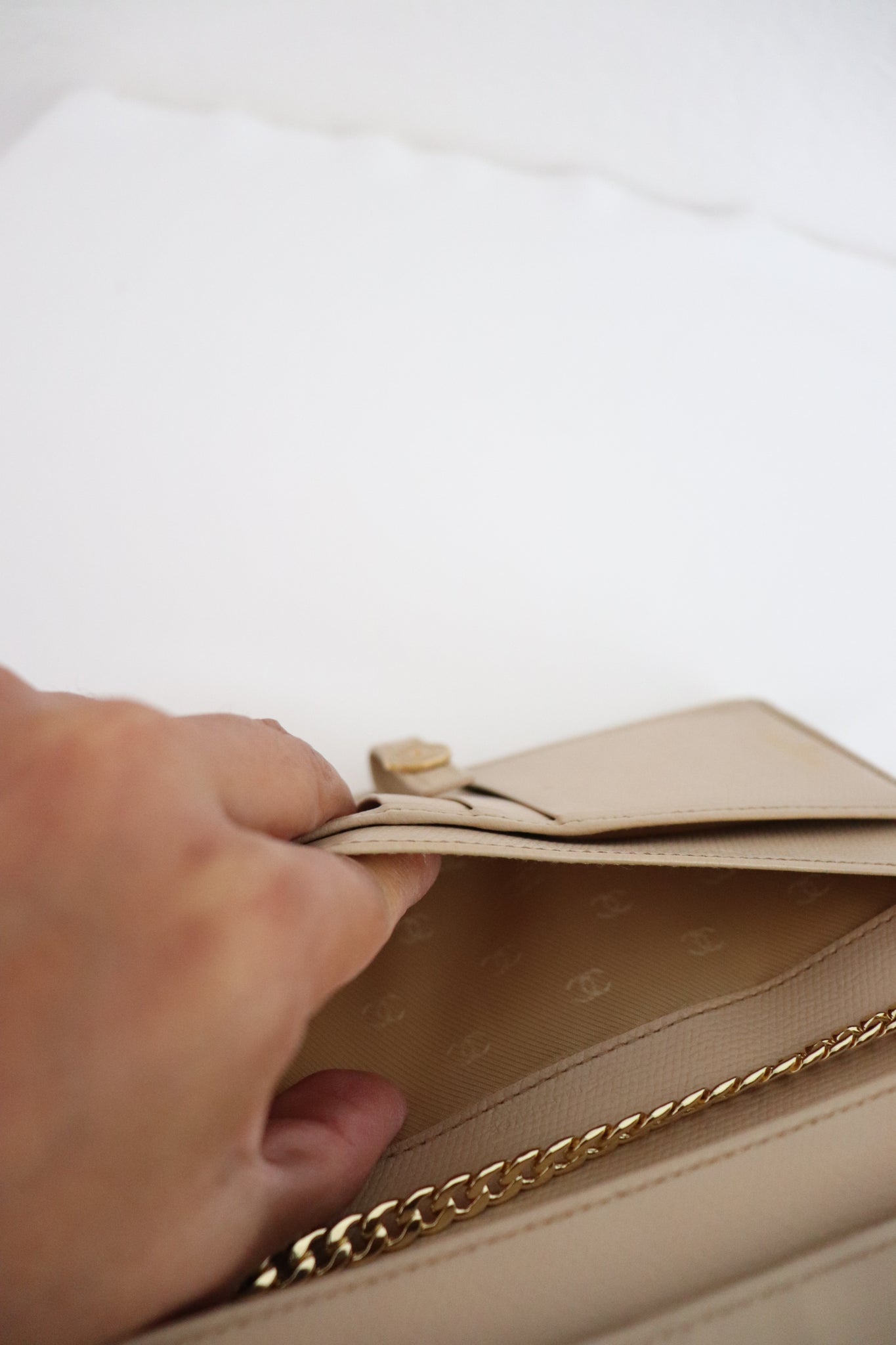 A stunning Chanel wallet perfect to use on the go. Has multiple compartments to store cash, cards, coins and more! Crafted in 2005-2006