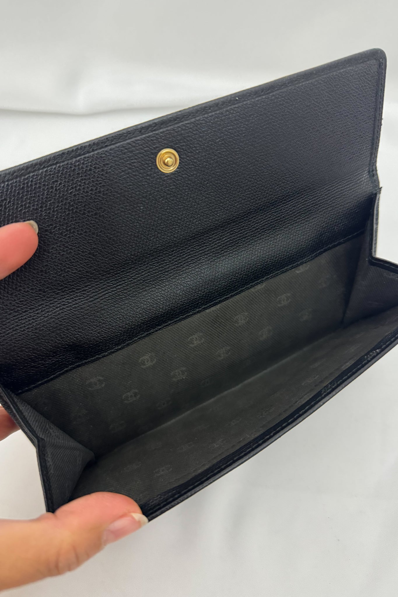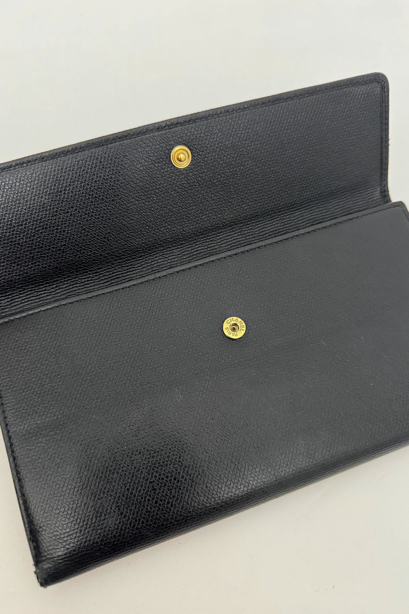 Chanel grained calfskin wallet with golden button – The Vintage Landing