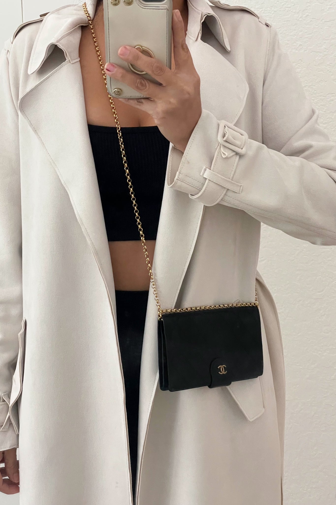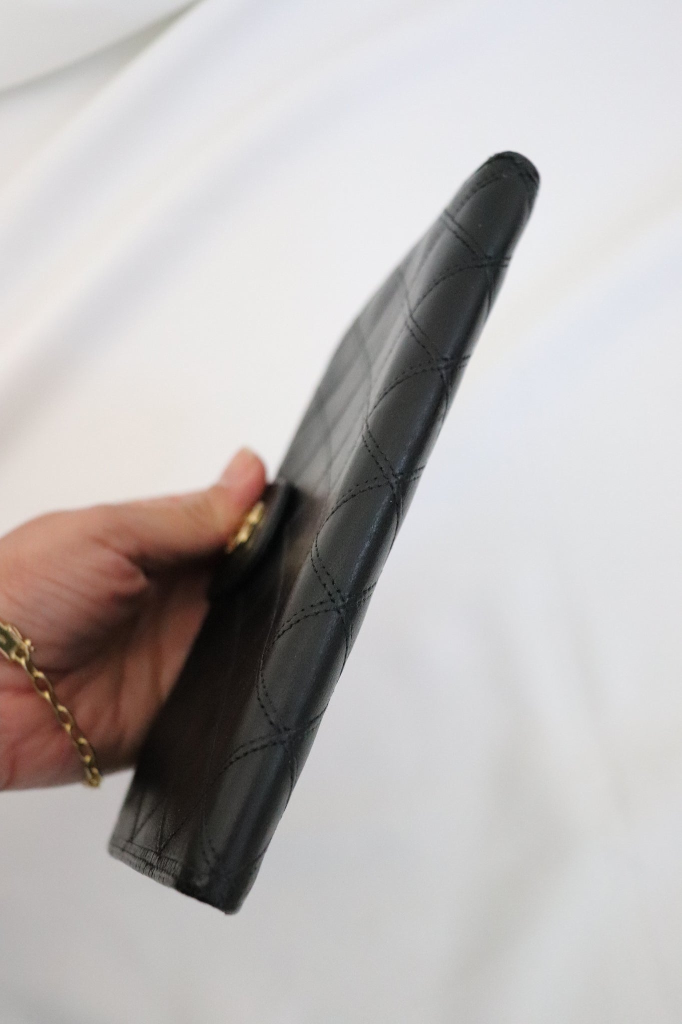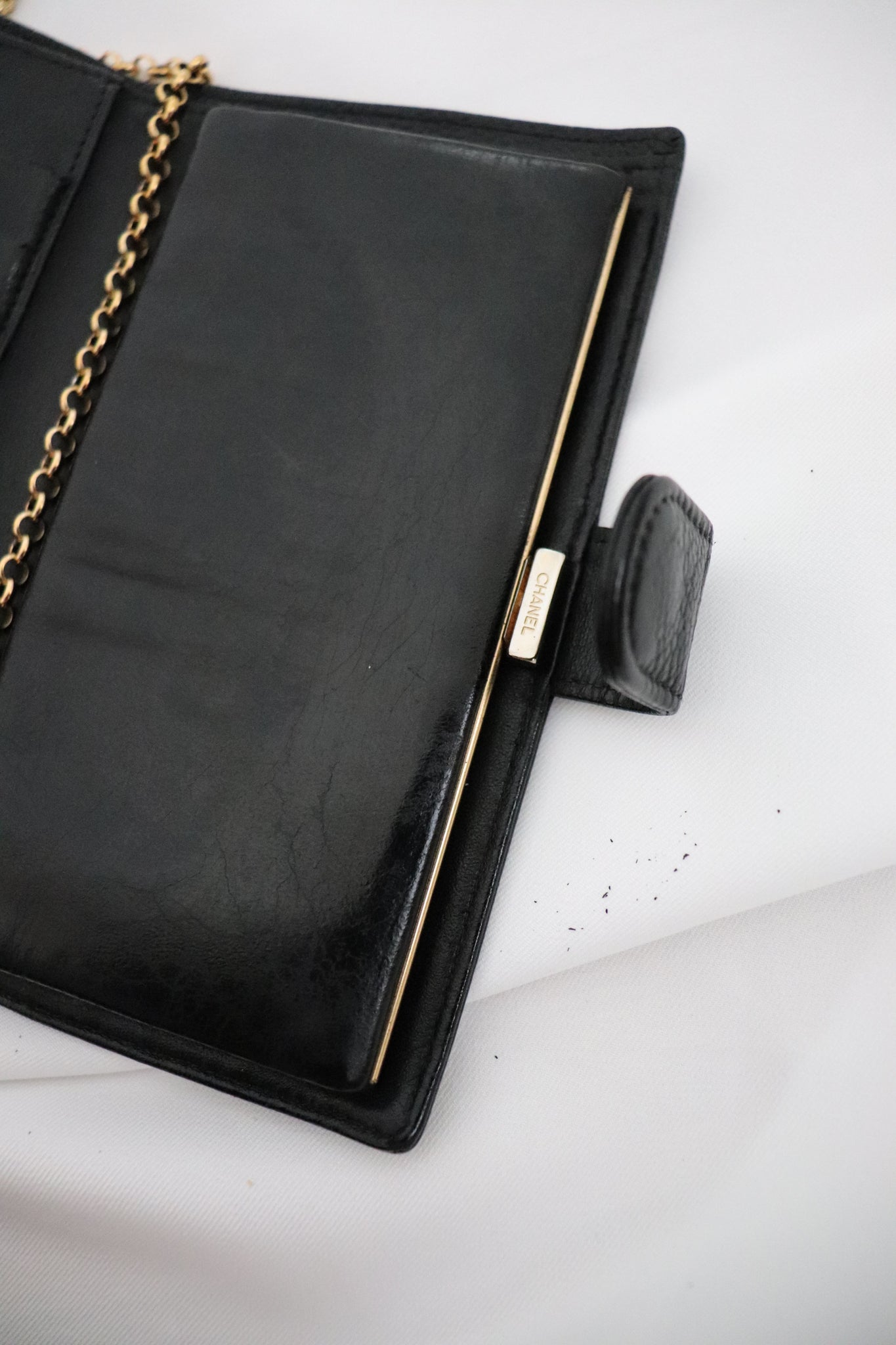 Vintage Chanel wallet that has compartments to store cash, cards, coins, etc. A classic piece that can be dressed up or down.