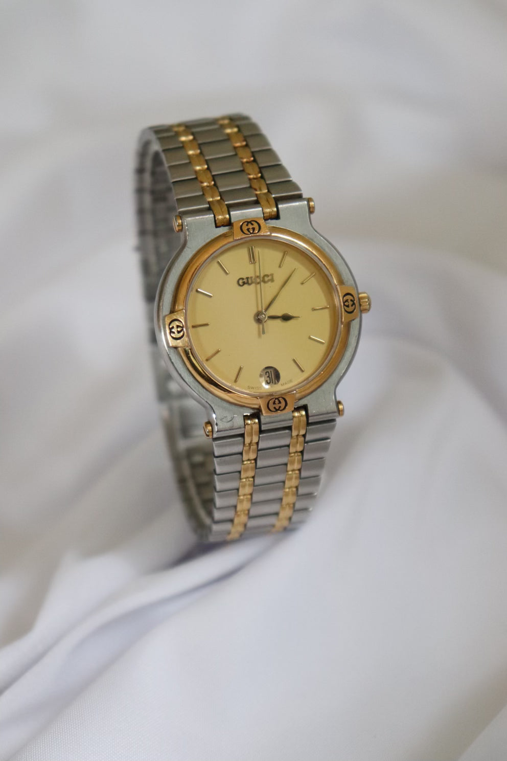 Vintage Gucci 1990s Date Round Dial Two Tone Watch| Shop Canela Vintage – The Vintage Landing