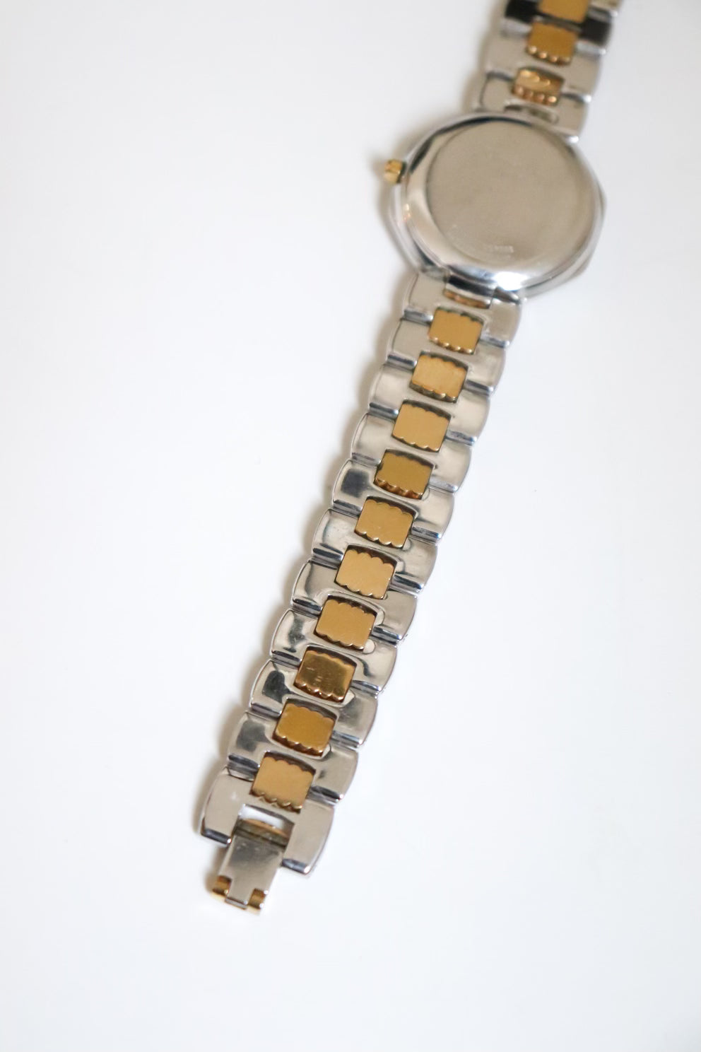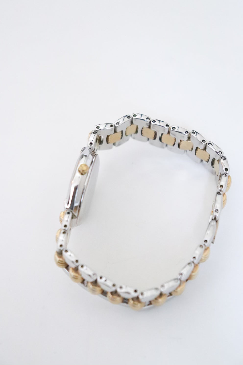 - Integrated sculpted gold and silver tone bracelet